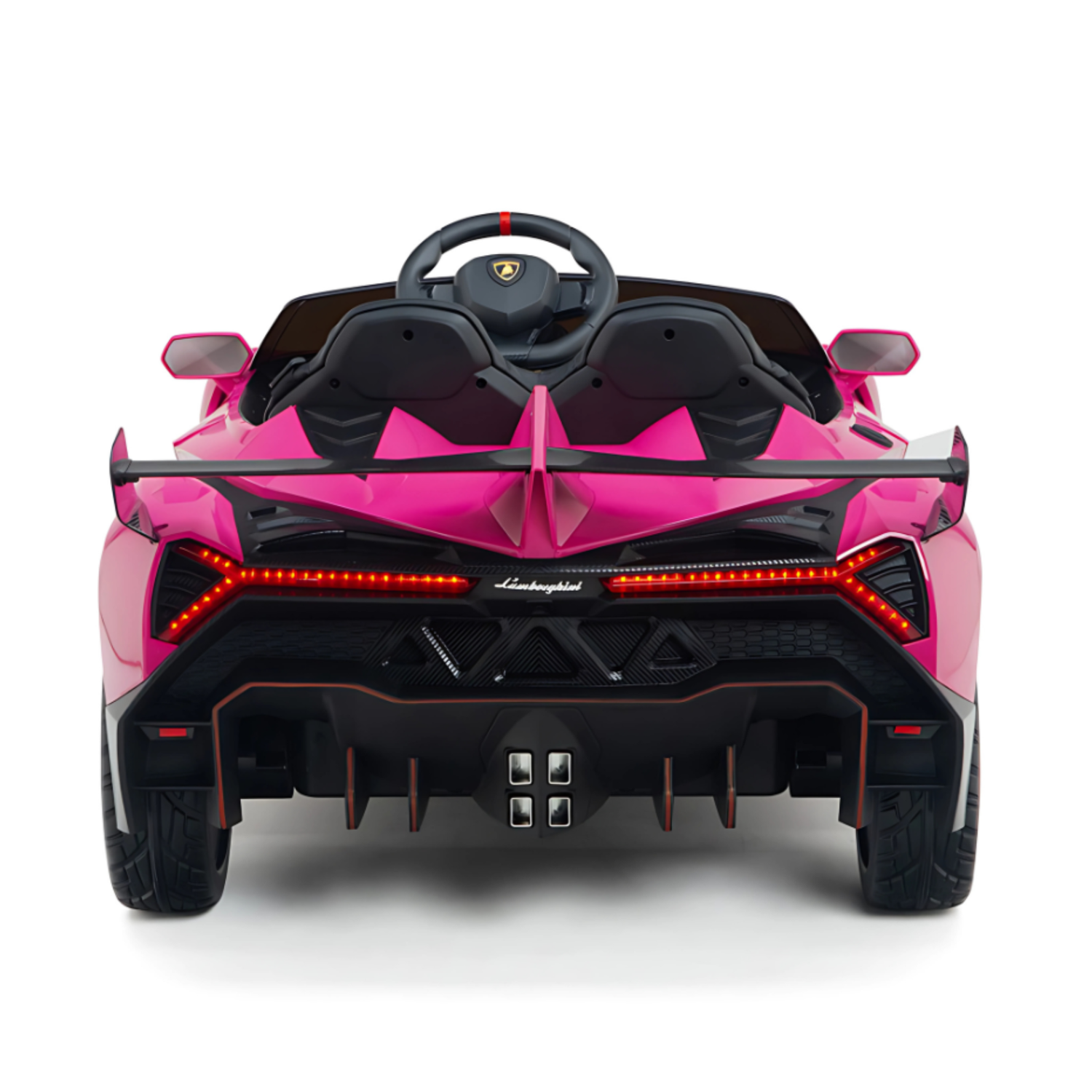 The Lamborghini butterfly doors open upward just like the real Veneno, thrilling kids with every entry and exit. Rubber wheels absorb vibrations for smoother rides, while the eco-leather seat keeps young drivers comfortable on any terrain.