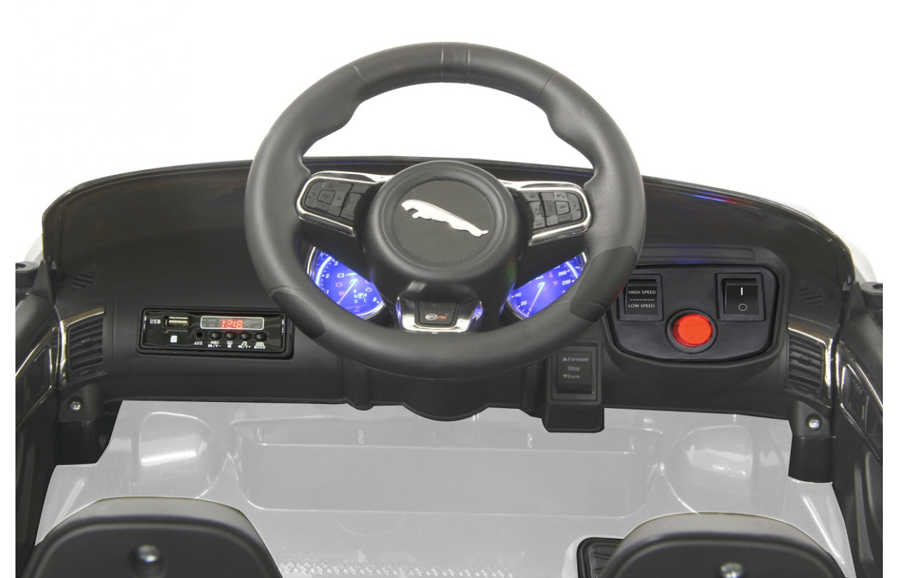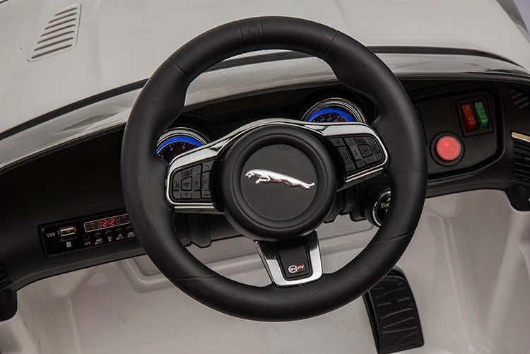 The upgraded sound system features Bluetooth, USB, and MP3 inputs, letting kids enjoy their favorite music while driving. LED headlights and realistic body lines capture the sleek appeal of the real Jaguar F-Type, making every trip feel authentic.